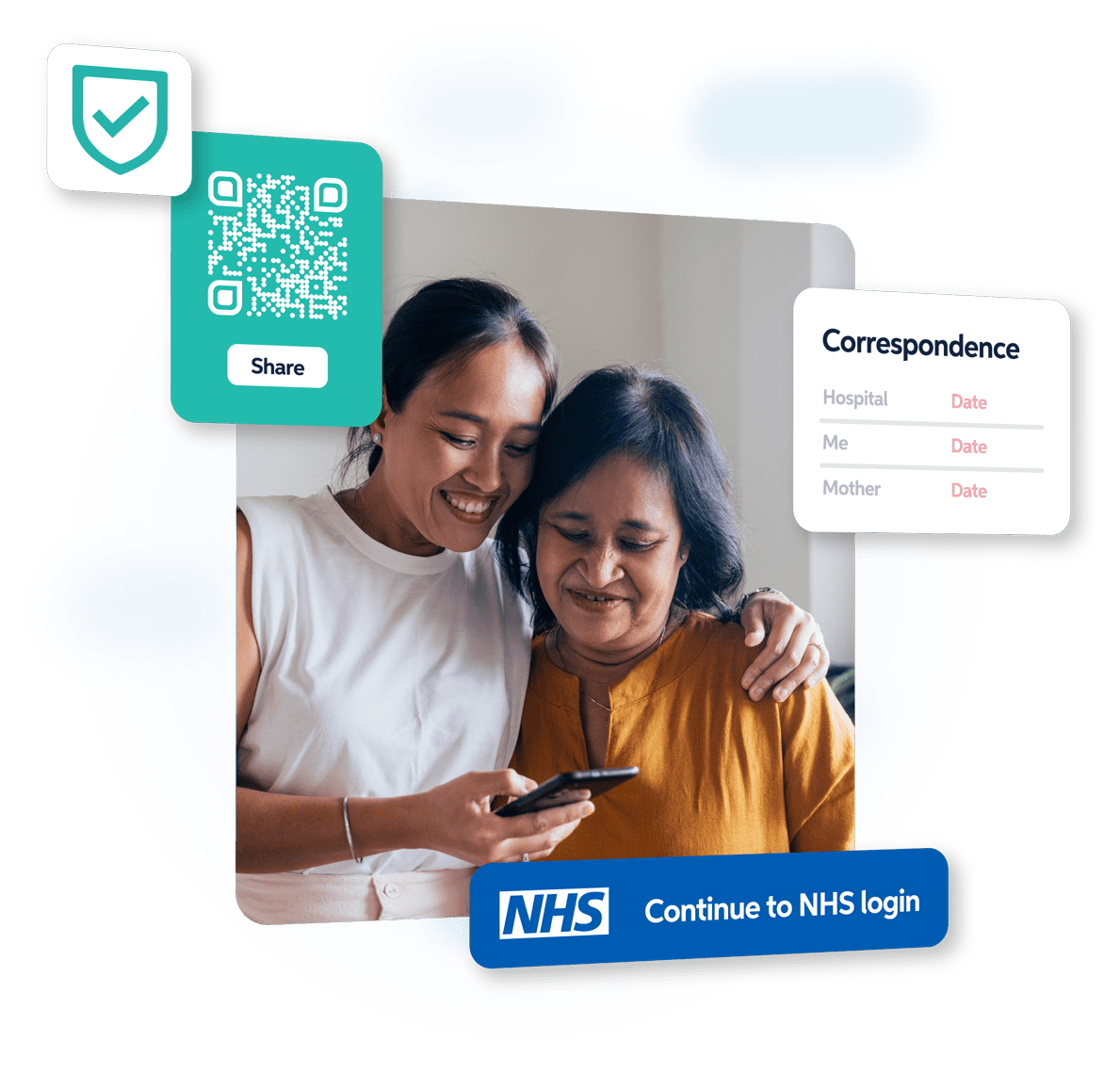 NHS login securely authenticates patient logins for you, while temporary QR codes make it safe and simple for patients and family members to collaborate with clinical teams through shared access.